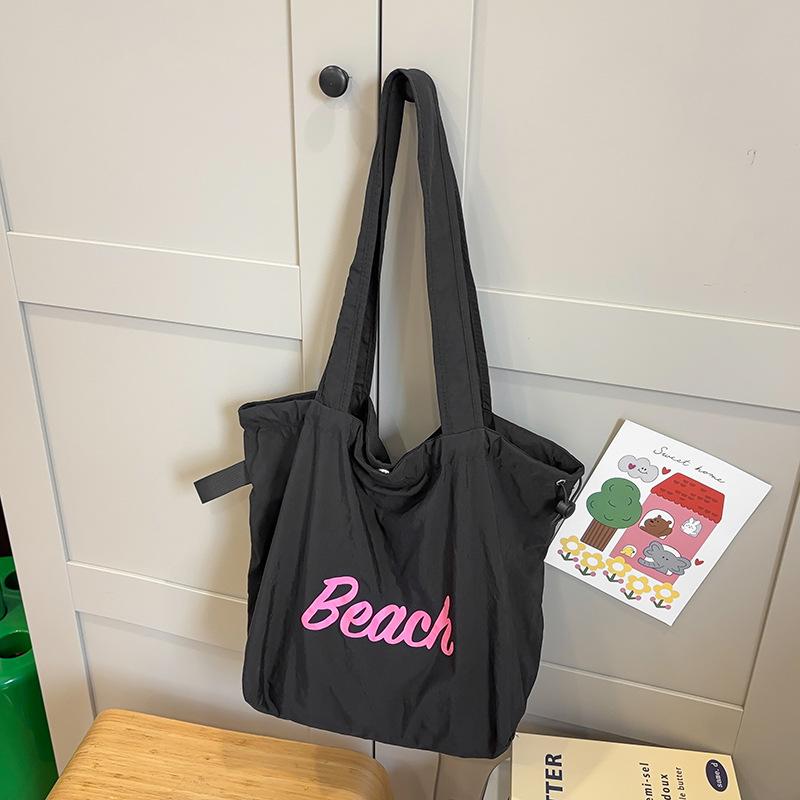 Сумка женская нейлоновая сумка через плечо с принтом алфавита, повседневная универсальная портативная сумка на шнурке большой вместимости чёрный
