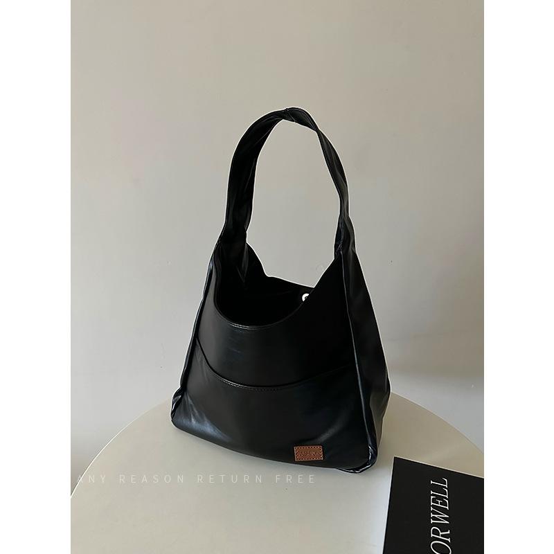 Сумка женская новая осенне-зимняя большая вместительная сумка-ведро из мягкой искусственной кожи повседневная сумка-ведро нишевая сумка через плечо подмышку чёрный