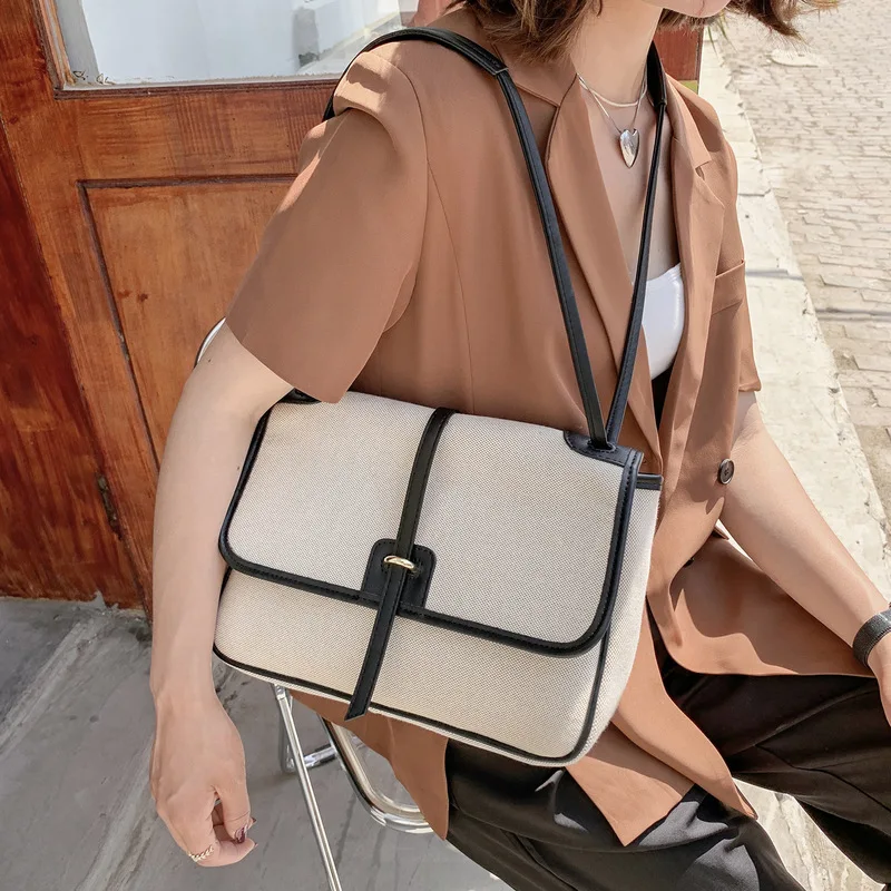 Сумка женская холщовая, вместительный квадратный саквояж кросс-боди, модный простой чемоданчик, лето 2021