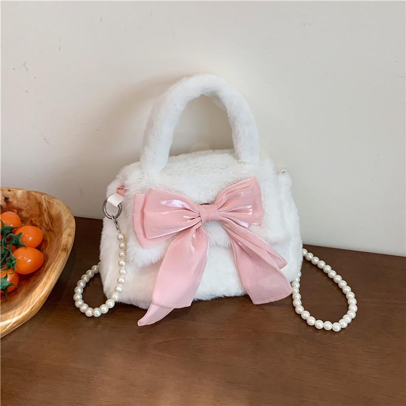 Сумка-сумка женская 2024 новая зимняя модная корейская версия модная бант на одно плечо косая пролетная бисерная маленькая квадратная сумка белый