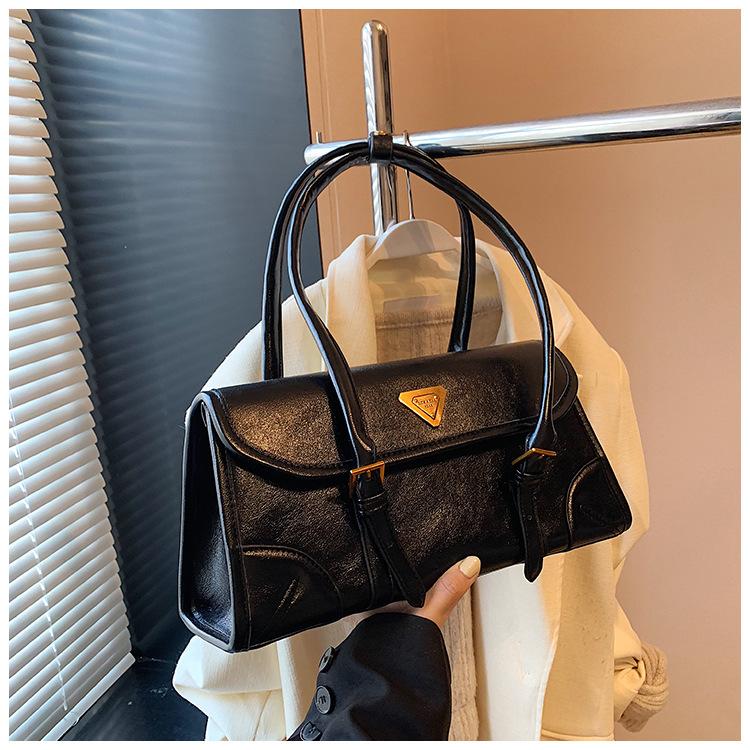 Сумка женская 2024 осень новая мода популярная универсальная французская флип ретро сумка через плечо портативная сумка-багет чёрный