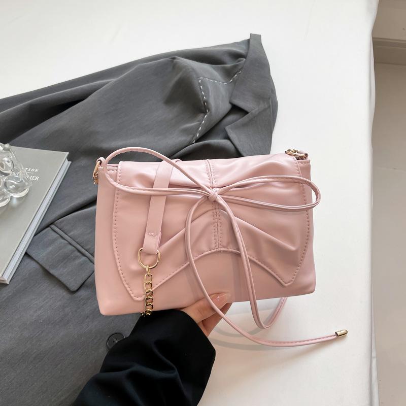 Сумка женская 2025 весна и лето новая высококачественная сумка-мессенджер через плечо с цепочкой простая модная сумка-облако с бантом розовый