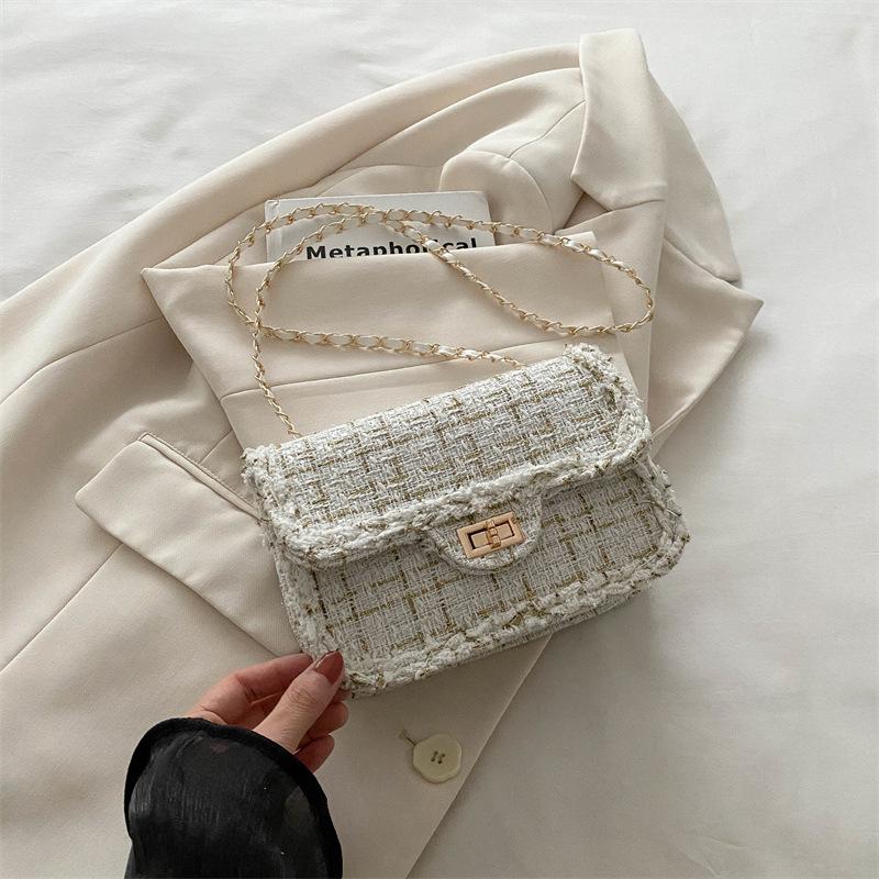 Сумка женская 2025 новая модная шерстяная клетчатая сумка-мессенджер простая цепочка персонализированная маленькая квадратная сумка через плечо белый