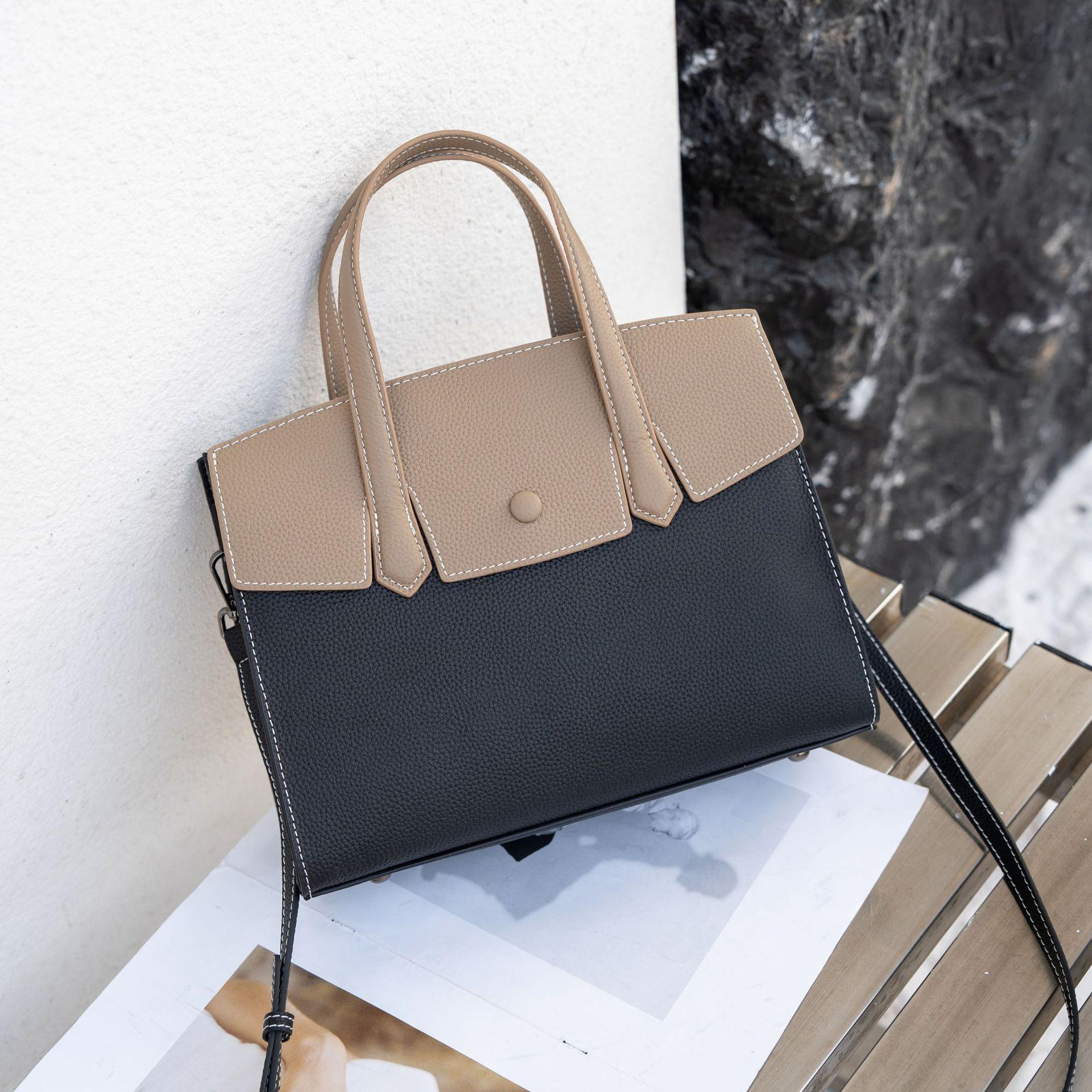 Сумка из коровьей кожи, сумка кросс-боди квадратной формы, популярная модная контрастных цветов, нишевая женская, на одно плечо, практичная, портативная чёрный