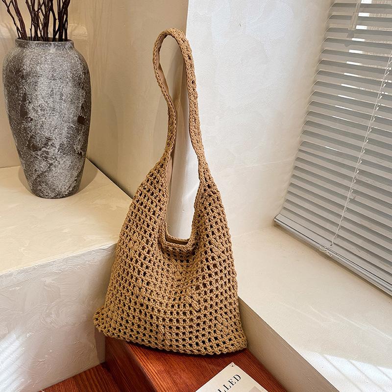 Сумка из полой хлопковой нити, плетеная сумка, новая летняя простая плечевая соломенная сумка, сумка-тоут, пляжная сумка, универсальная женская сумка хаки