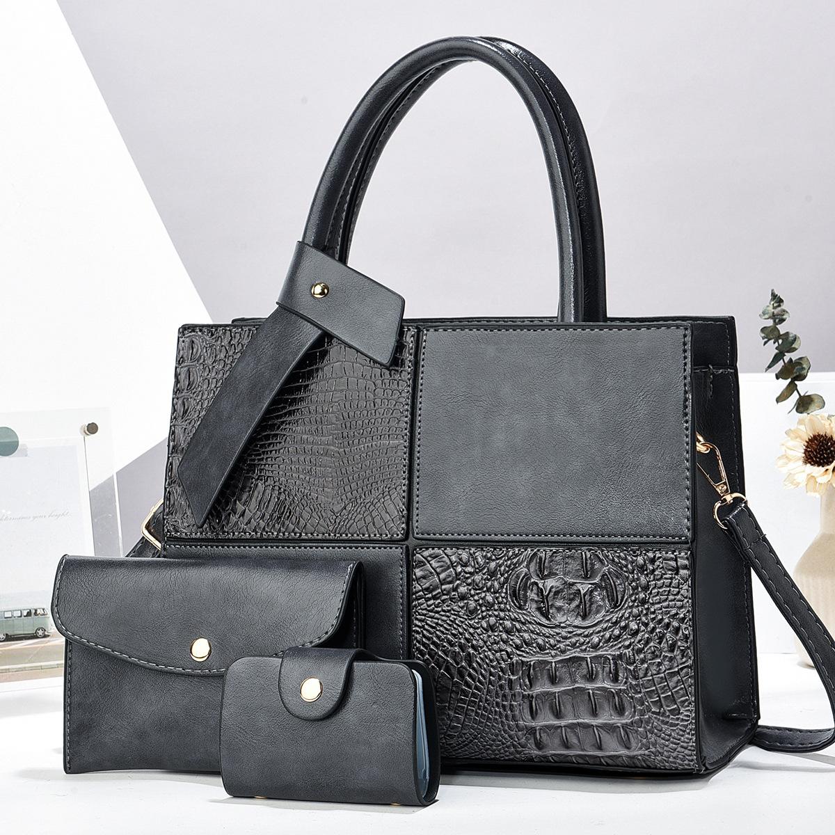 Сумка из 3 предметов с крокодиловым узором, новый лоскутный крокодиловый узор, вместительная легкая сумка через плечо, кошелек для карт и монет