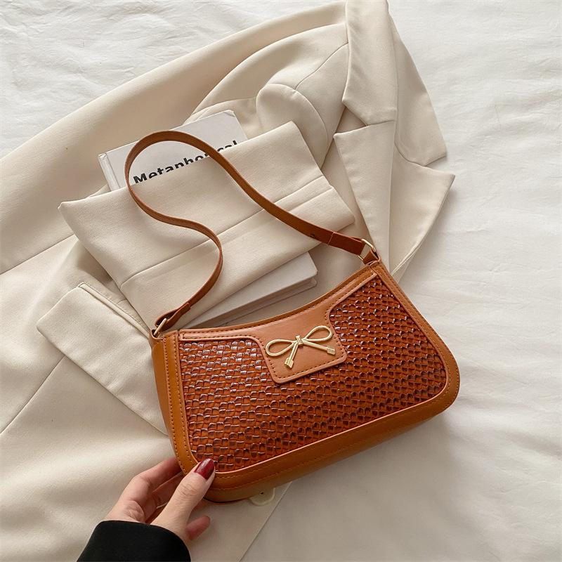 Сумка-корзина для овощей женская, модная трендовая коллекция весна-лето 2025, с бантом, свежая, через плечо, портативная коричневый