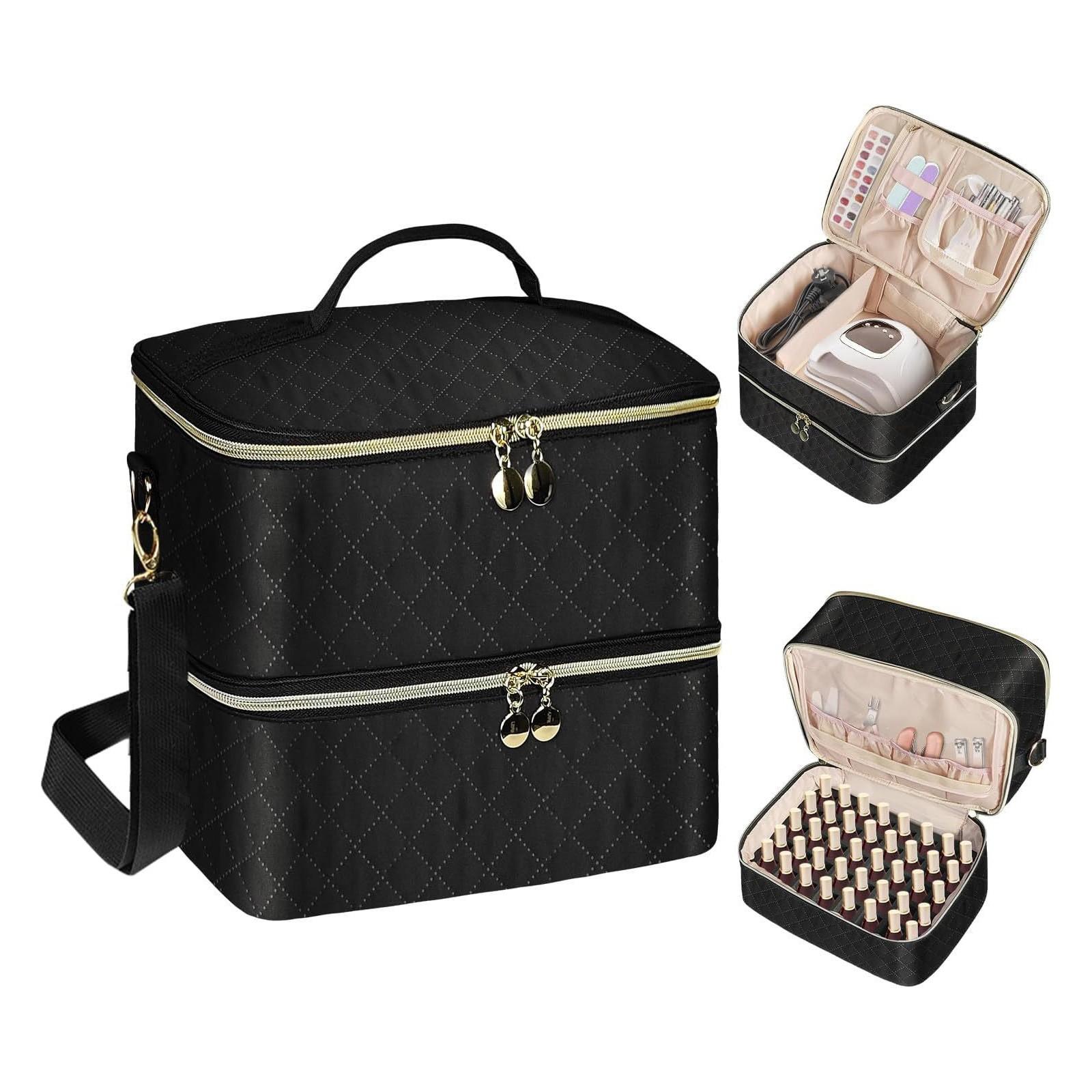 Сумка-косметичка с ремнем через плечо для хранения лака для ногтей, двухслойная дорожная сумка для хранения One Size чёрный