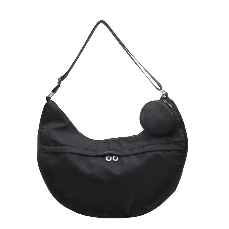 Сумка кроссбоди нишевая японская повседневная на плечо большая вместимость нейлоновая сумка-полумесяц мужская и женская сумка-пельмень чёрный