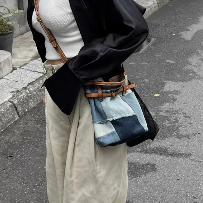Сумка кросс-боди Женская из денима, повседневный саквояж на плечо, модная Винтажная сумочка-мешок для покупок в стиле Харадзюку, 2023