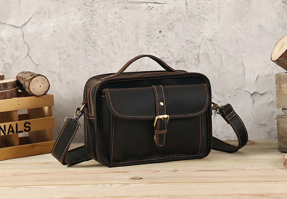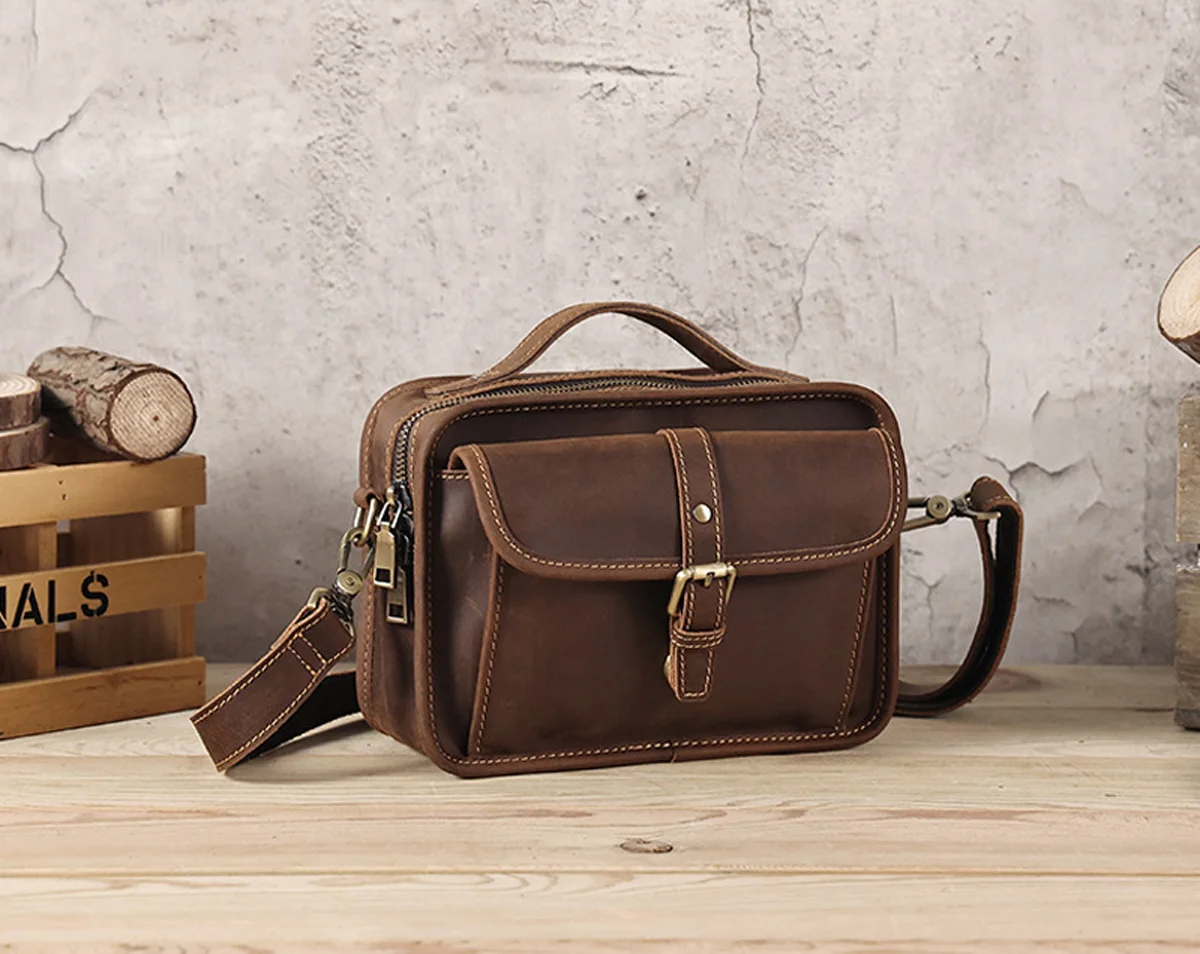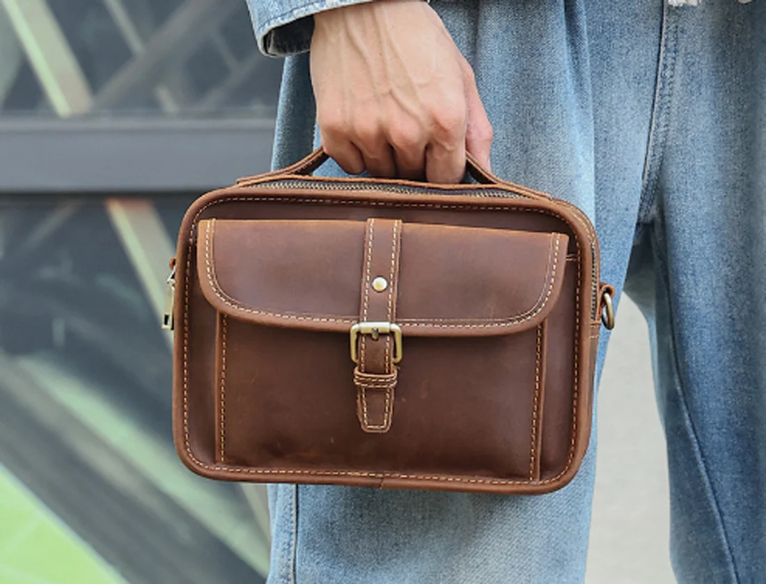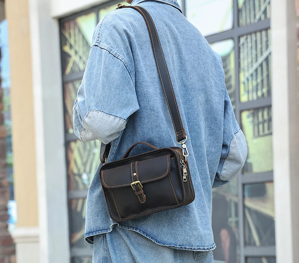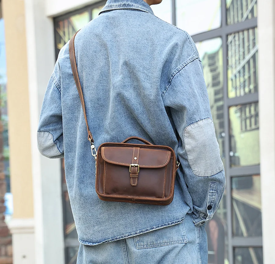 Сумка кросс-боди мужская из натуральной кожи, саквояж на плечо в стиле ретро, сумочка кросс-боди Крейзи Хорс