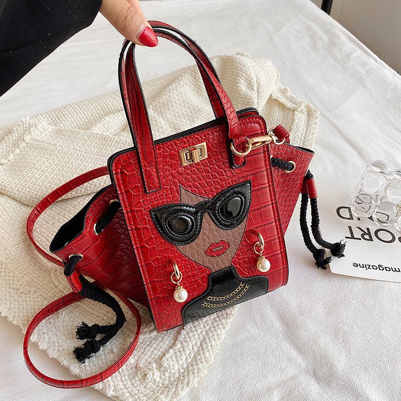 «Сумка-мессенджер для девочек 2022 года с узором «Камень», жемчужными заклепками и ремнем для очков» темно-серого