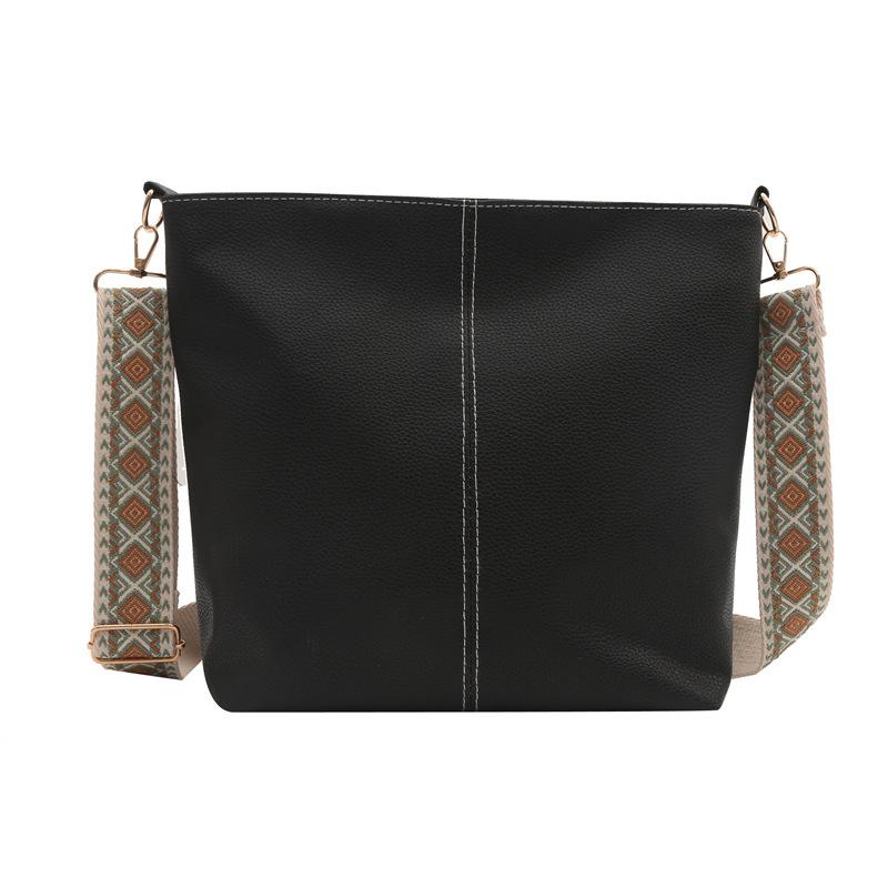 Сумка-мессенджер на одно плечо в стиле ретро с широким плечевым ремнем, вместительная, для женщин, 2024 года, новая, универсальная, ранняя весна чёрный