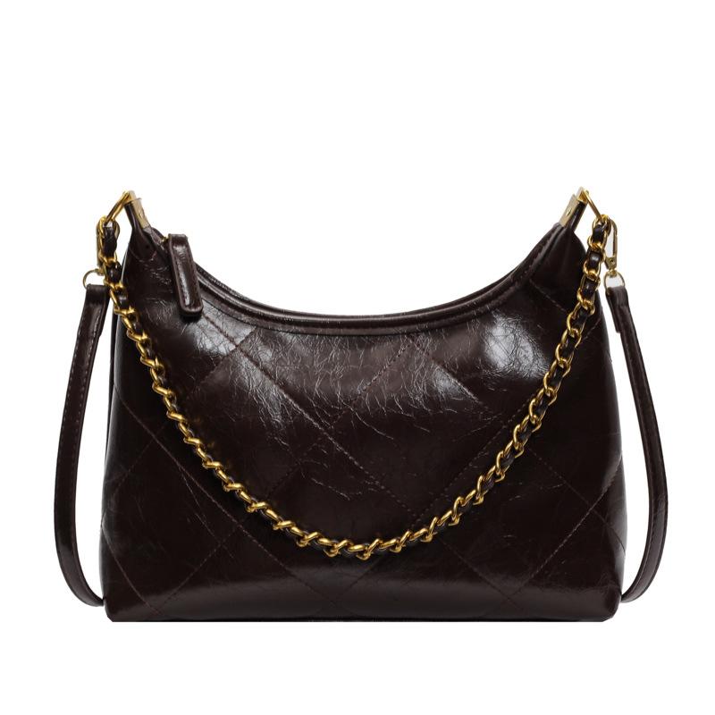 Сумка-мессенджер с ромбовидной цепочкой, женская, большой вместимости, новинка 2024 года, сумка-мессенджер на одно плечо, сумка-мессенджер для поездок на работу кофейный