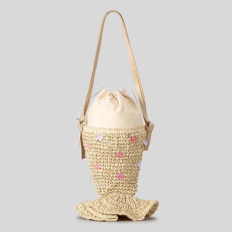 Сумка-мешок Niche Design из соломы, плетеная вручную, с пайетками, в форме рыбы, сумка через плечо, летняя пляжная сумка бежевый