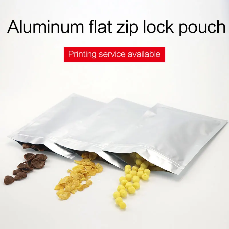Сумка на молнии с плоским дном, серебристая алюминиевая фольга, сумка на молнии, закрывающиеся пакеты для упаковки продуктов, доступна печа...