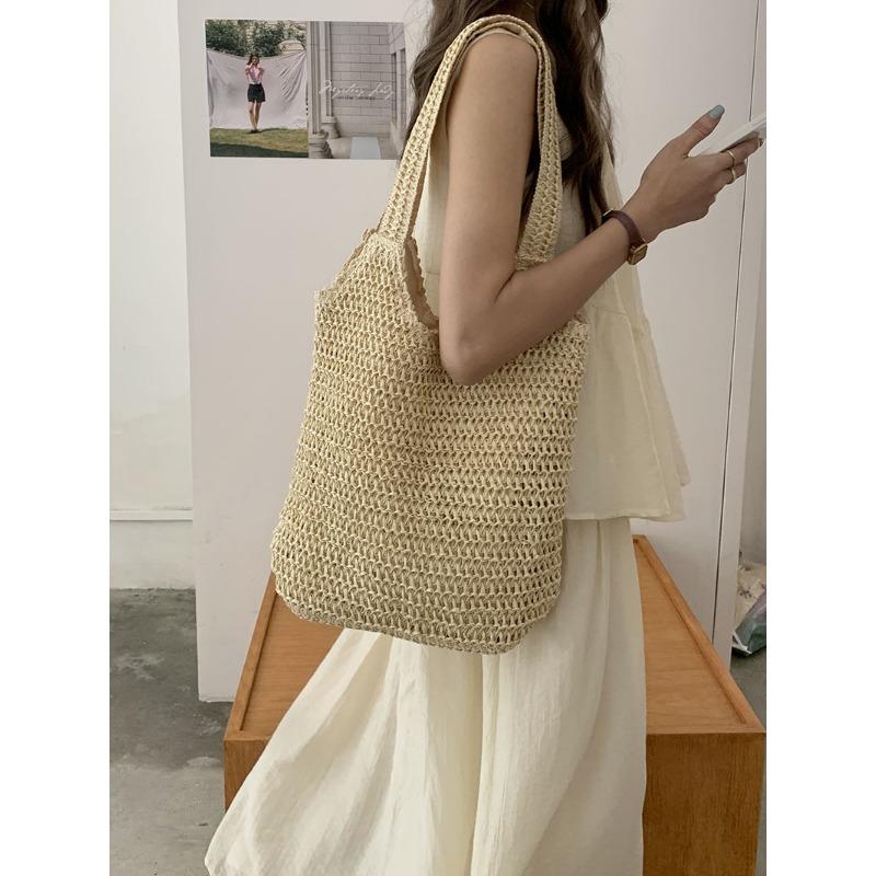 Сумка на одно плечо в стиле отпуска, сумка-тоут, большая вместимость, повседневная ручная плетеная сумка коричневый