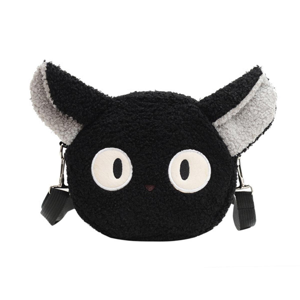 Сумка на одно плечо с мультяшными животными, осень-зима, плюшевая, милый кот, медведь, овца, регулируемая, для женщин и девочек, сумка через плечо, сумка для монет, чехол для телефона чёрный