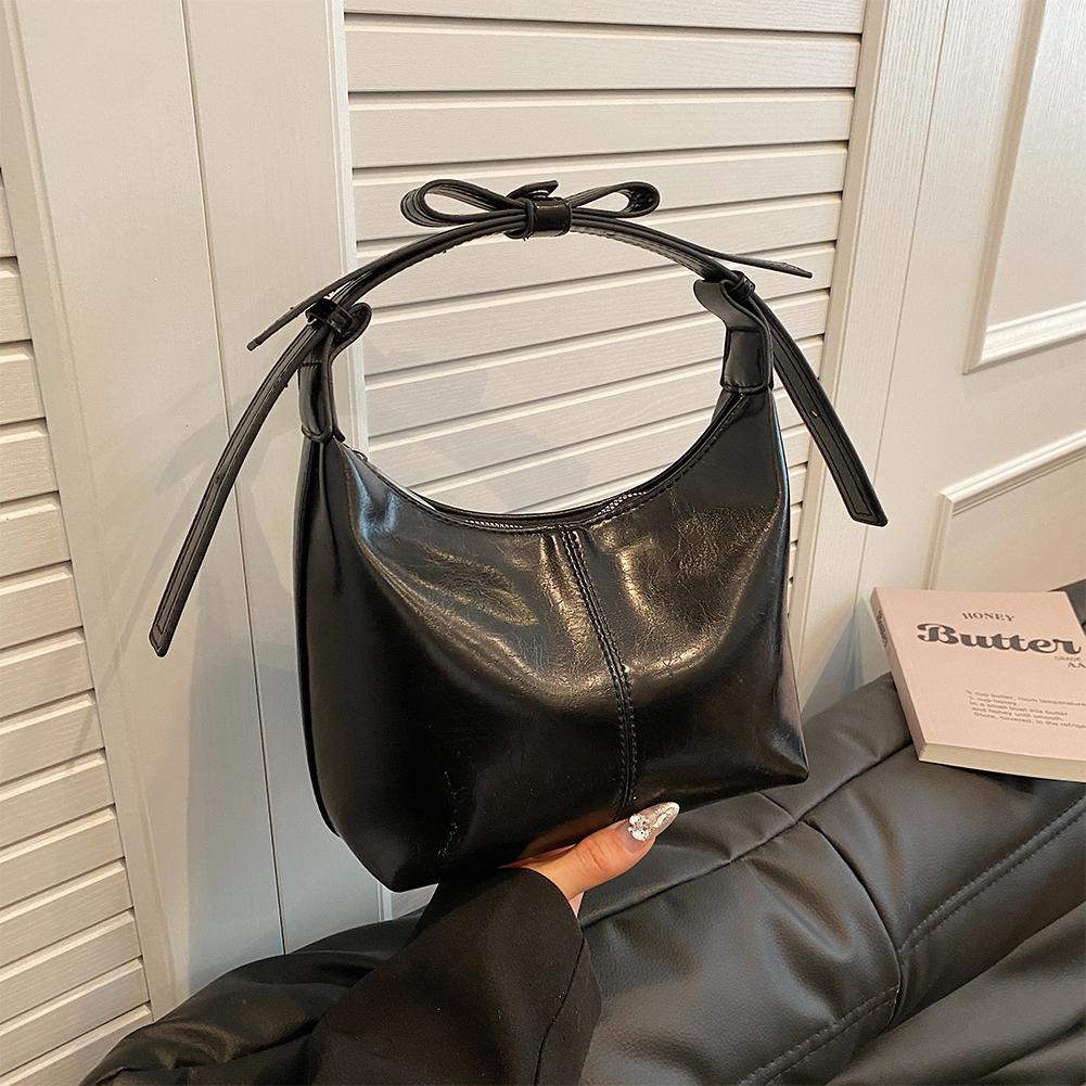 Сумка на плечо в форме полумесяца, модная сумка-хобо из искусственной кожи, однотонная модная сумка через плечо, кошелек-клатч для женщин и девочек чёрный