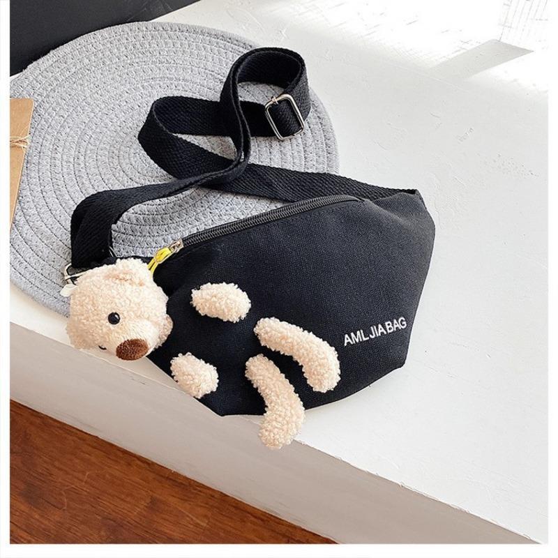 Сумка на пояс Bear для студентов, простая, через плечо, холщовая, женская, с напечатанными буквами, милая чёрный