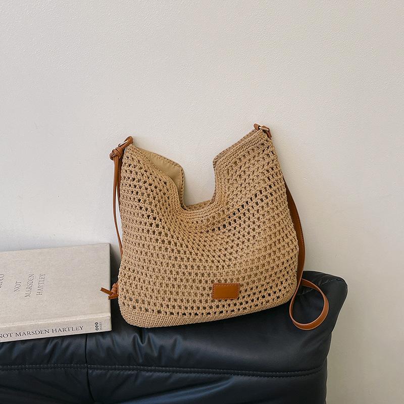 Сумка плетеная под мышкой летняя пляжная отпускная сумка для отдыха большая вместимость тоут универсальная на плечо хаки