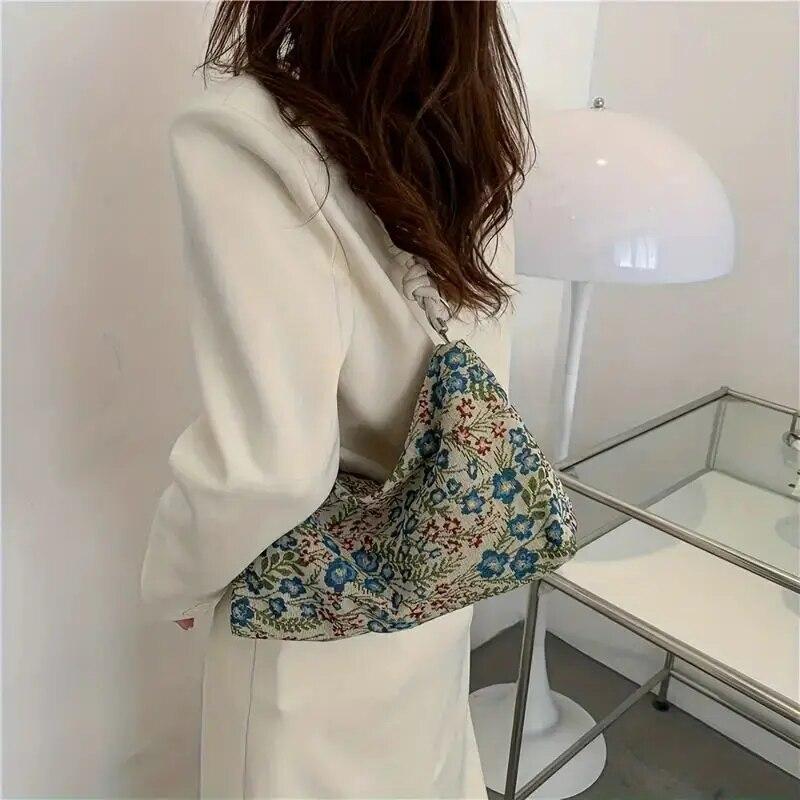 Сумка подмышки с принтом в стиле ретро, большая вместительная стильная повседневная парусиновая сумка на плечо, женская простая универсальная сумка-хобо, сумка синий