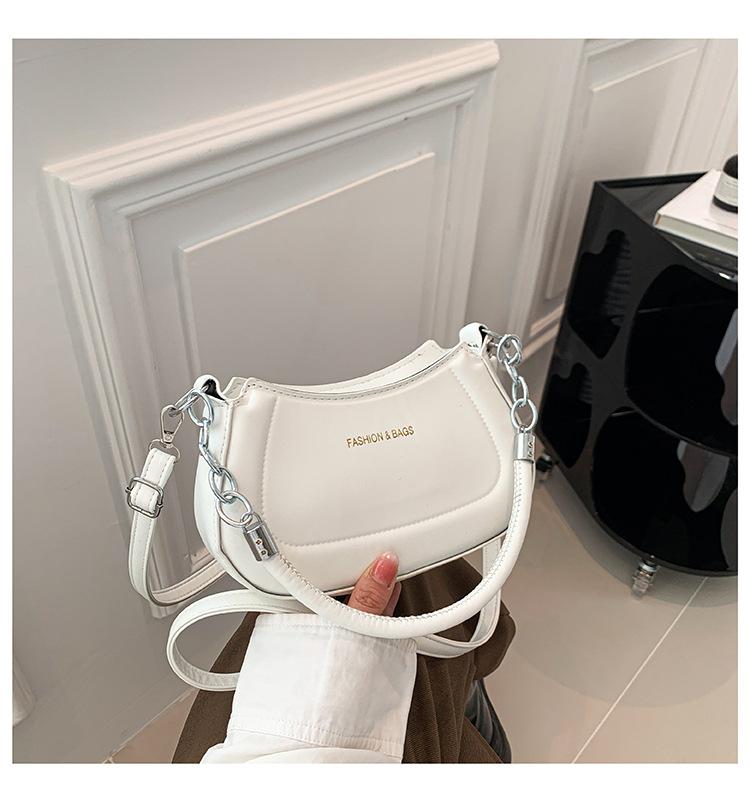 Сумка подмышкой в иностранном стиле для женщин 2024 года, новая корейская версия, однотонная цепочка, универсальная, на одно плечо, через плечо, маленькая квадратная белый