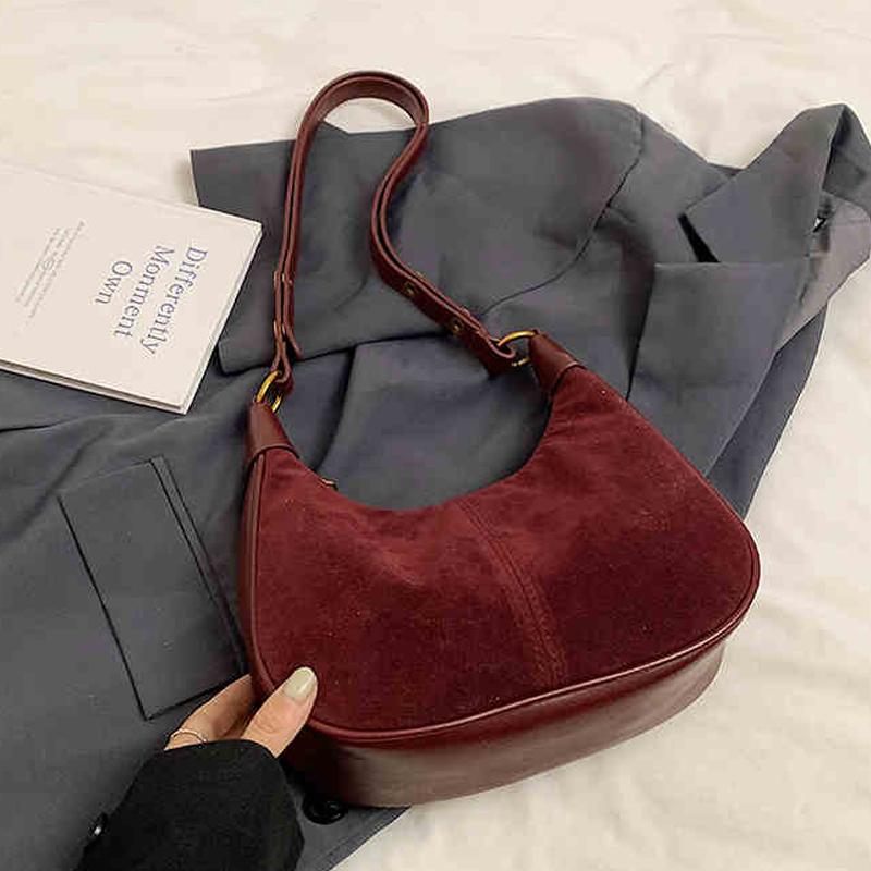 Сумка подмышкой из замши в стиле ретро, женская, осень-зима, новая, французская, роскошная, одно плечевая сумка, простая, универсальная, полумесяц