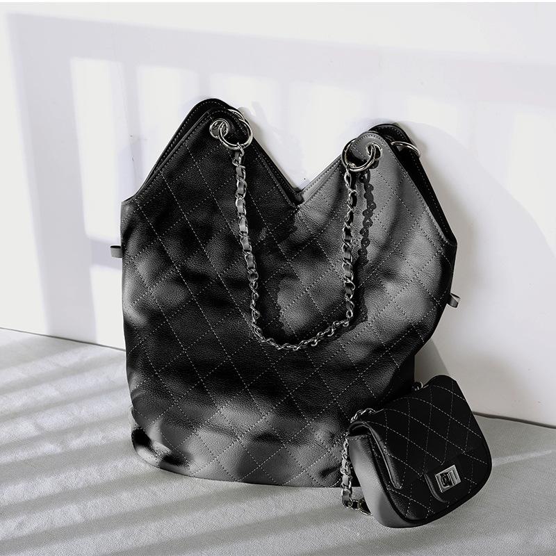 Сумка подмышкой из натуральной кожи с небольшой ароматной ромбовидной цепочкой, первый слой из коровьей кожи, большая вместимость, одно плечо, сумка для детей и мам, нейтральный тренд чёрный