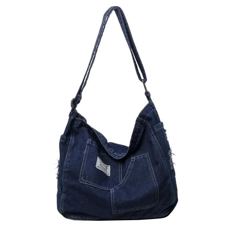 Сумка-портфель из джинсовой ткани унисекс для отдыха с боковым карманом, прочная модная сумка через плечо для поездок на работу и обратно синий