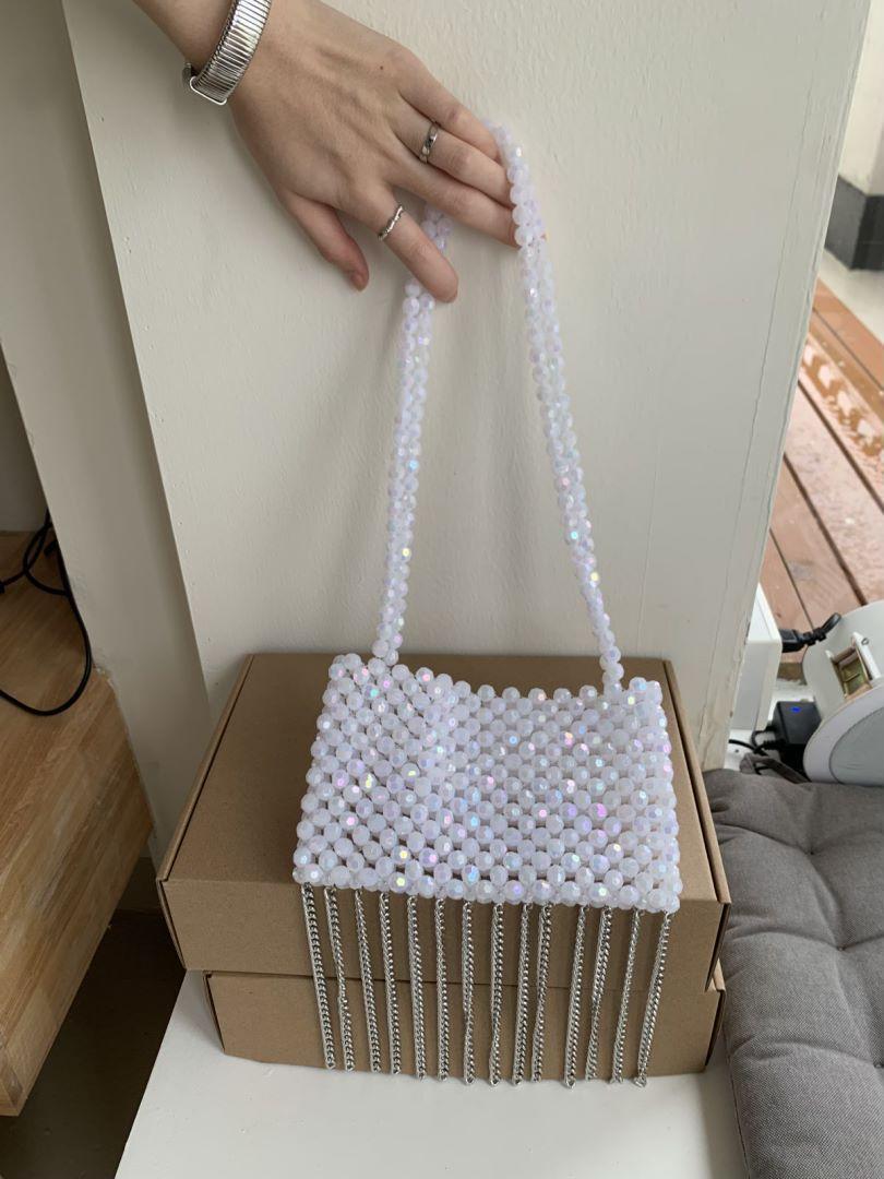 Сумка ручной работы из бисера, самодельная универсальная женская летняя сумка из бисера, переносная сумка через плечо под мышкой белый