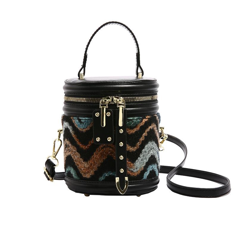 Сумка с волнистым узором контрастного цвета для женщин 2024 года, новая модная и универсальная персонализированная сумка через плечо из шерстяной ткани с плетением, переносная сумка-ведро чёрный