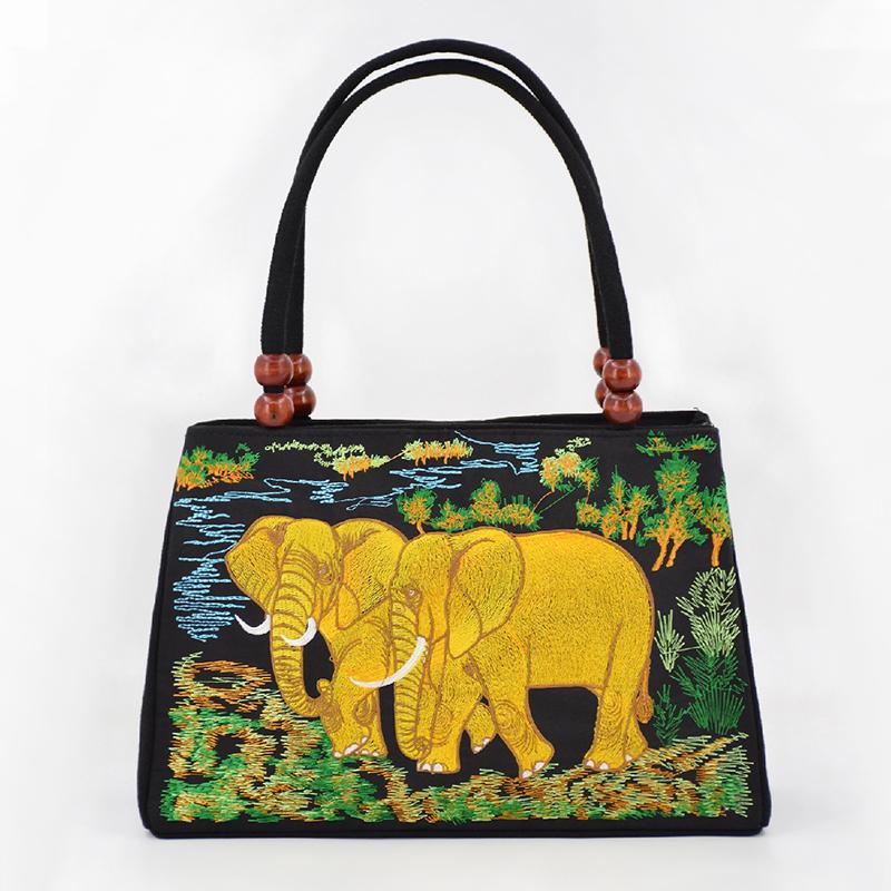 Сумка с вышивкой в этническом стиле, женская холщовая сумка с двойной молнией, большая вместительная сумка с принтом