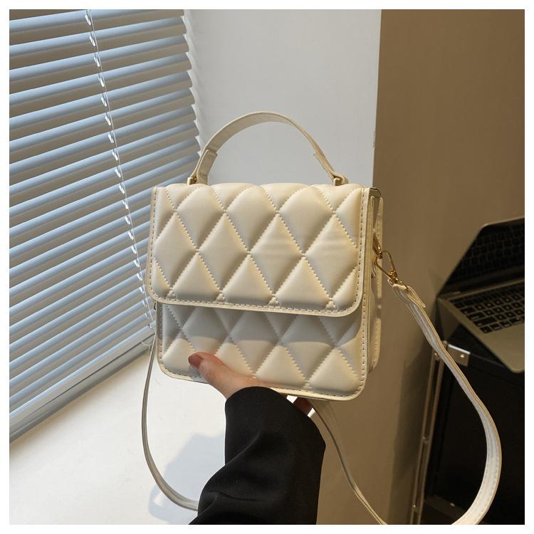 Сумка с вышивкой ромбами, женская новая фактурная сумка-перекидная маленькая квадратная сумка, однотонная, темпераментная сумка через плечо, женская сумка прилив белый