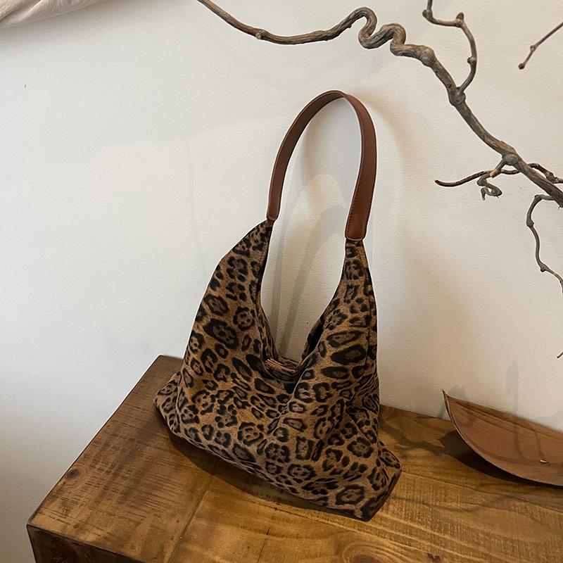 Сумка с леопардовым принтом, женская модная сумка-тоут, большая вместимость, осенне-зимняя сумка-мессенджер 2024 года, новая повседневная сумка в стиле ретро для поездок на работу коричневый