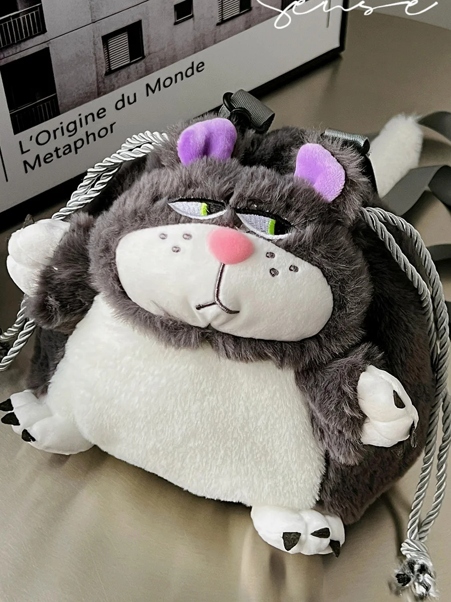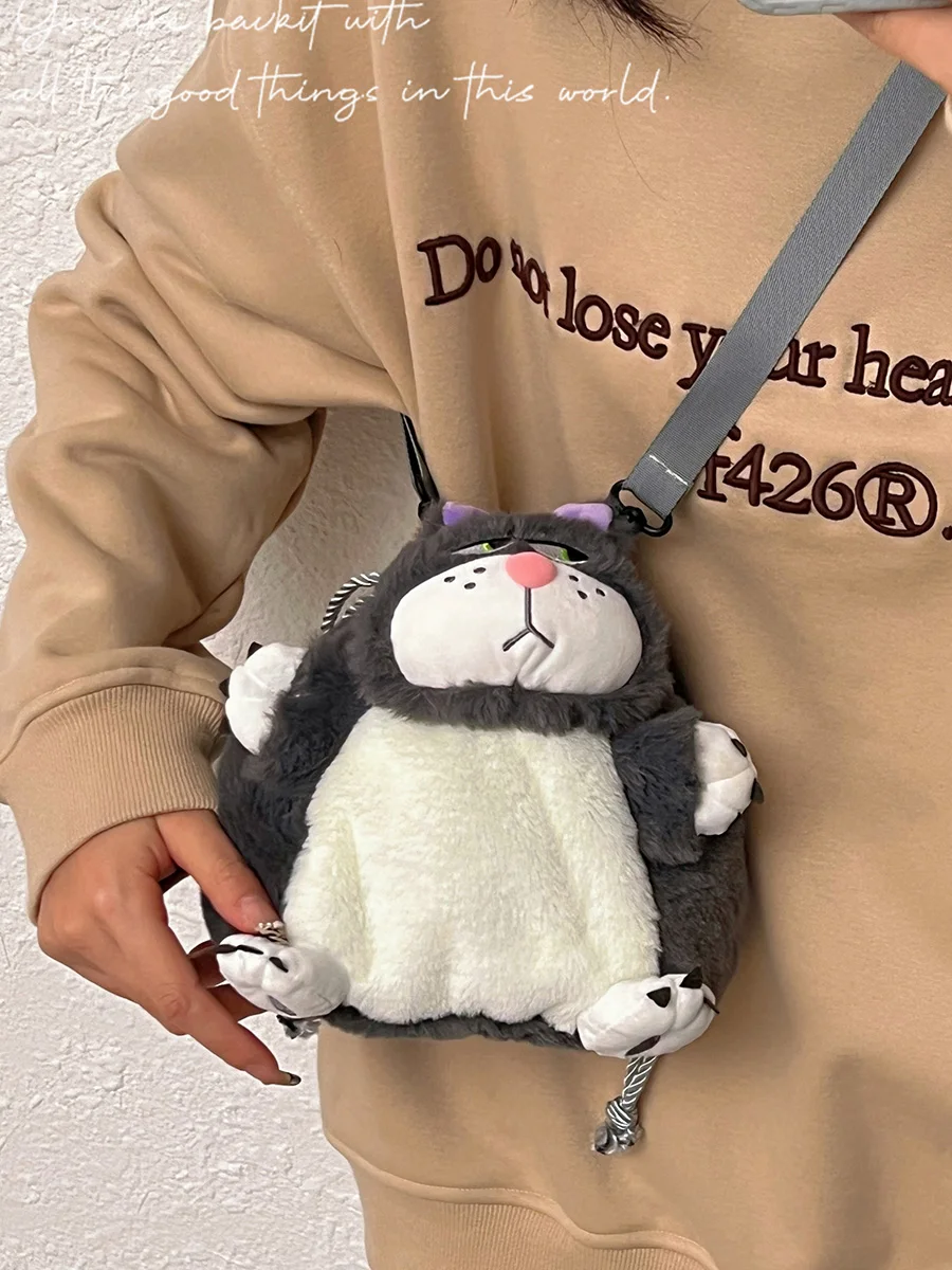 Сумка с мультяшным котом, симпатичная сумка-мессенджер, новая плюшевая сумка для телефона с тревожным котом