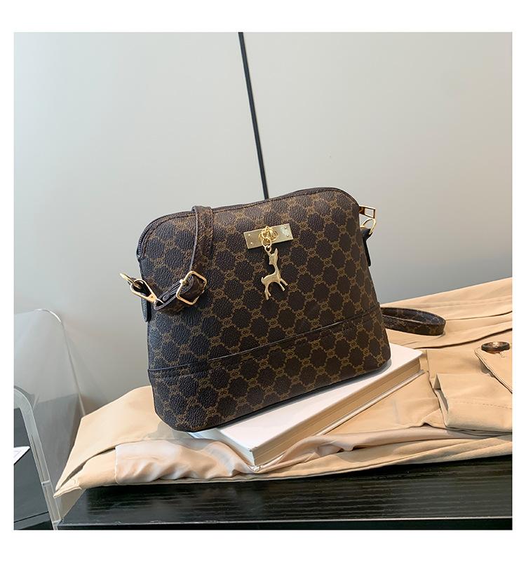 Сумка с подвеской в виде ракушки оленя, женская, новая модная ретро-сумка через плечо, персонализированная корейская версия сумки-мессенджера темно-коричневого