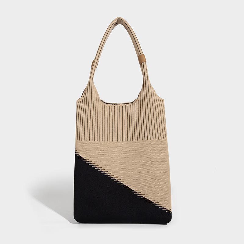 Сумка-тоут Нишевая Большая вместимость Легкая Треугольная сумка с цветными блоками Летающая плетеная сумка абрикосовый/чёрный