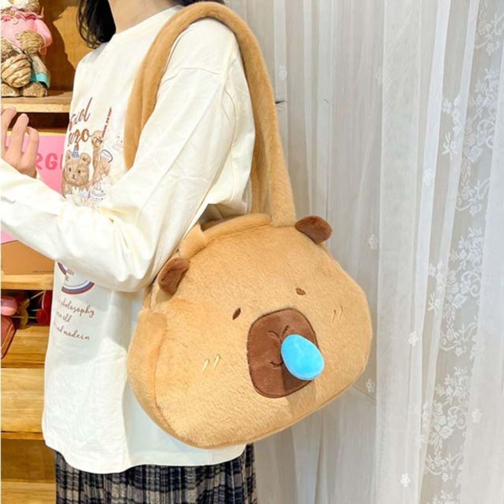 Сумка-тоут в мультяшном стиле в стиле преппи, сумка через плечо, простая плюшевая сумка-тоут в виде капибары для девочек Style C