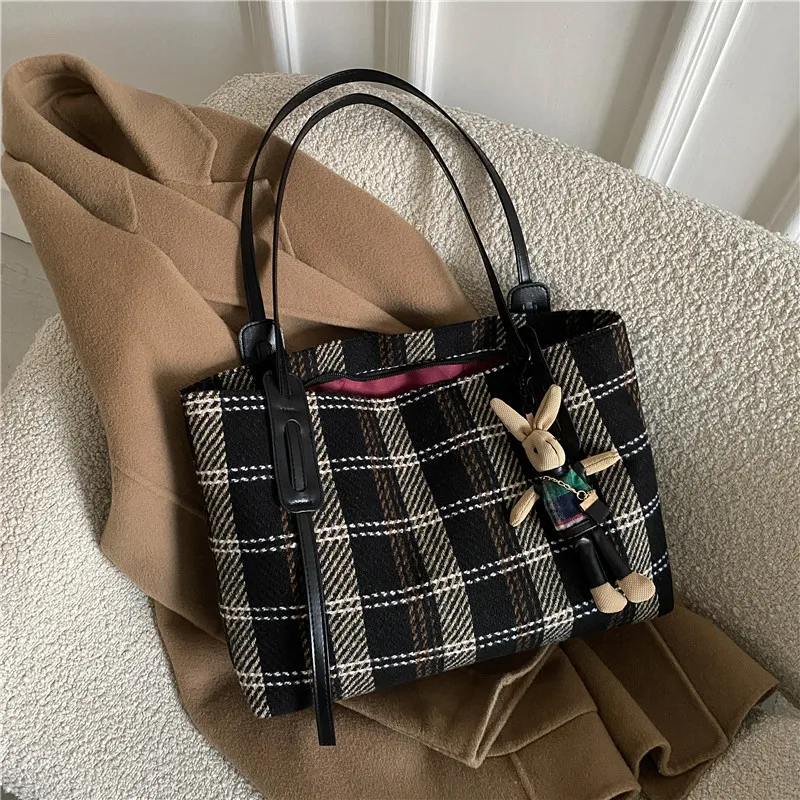 Сумка-тоут женская в клетку, сумочка-Шоппер для покупок, Роскошный дизайнерский модный саквояж с милым кулоном, Вместительная дорожная сумк...