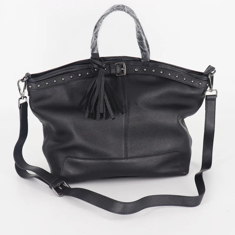Сумка-тоут женская из натуральной кожи, с заклепками, с кисточками