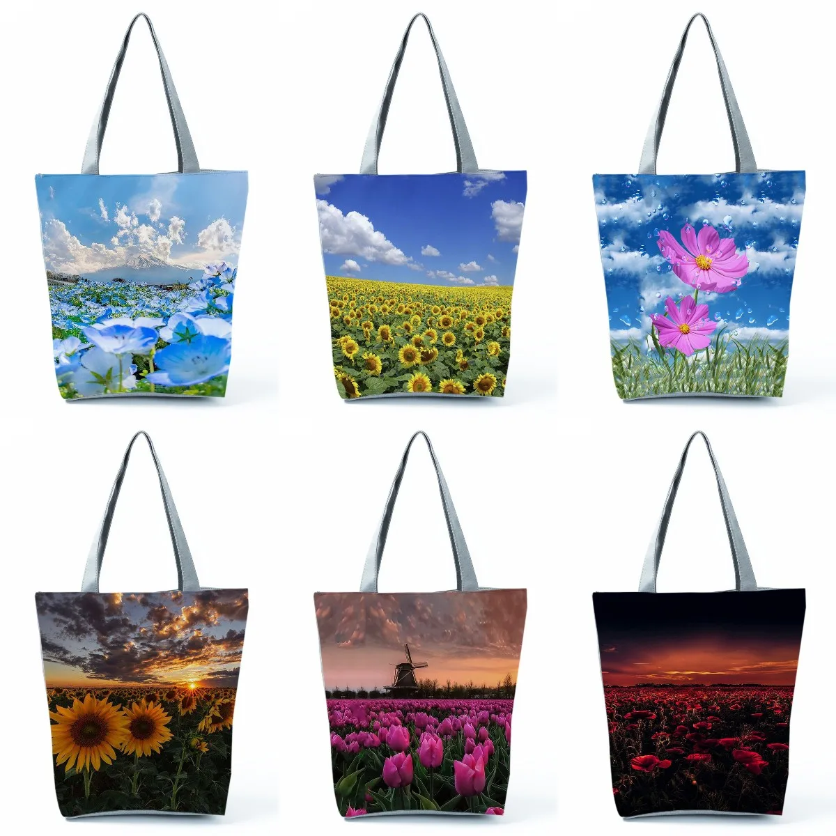 Сумка-тоут женская складная многоразовая с цветочным принтом