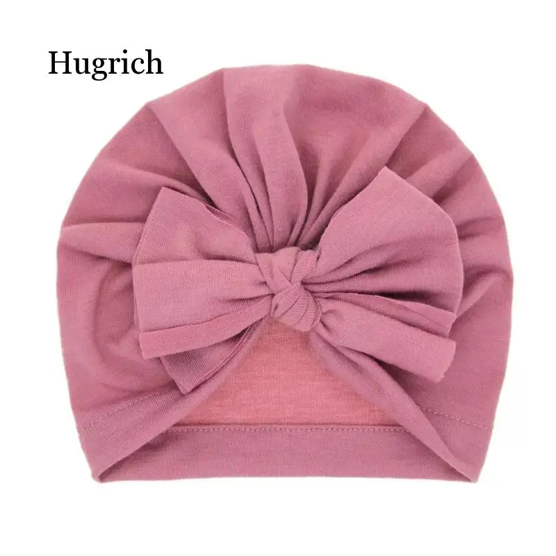 Lovely Winter Solid Color Thick Newborn Hat Boys Girl Cotton Soft Big Bow Turban Bonnet Caps Solids Baby Shower Props