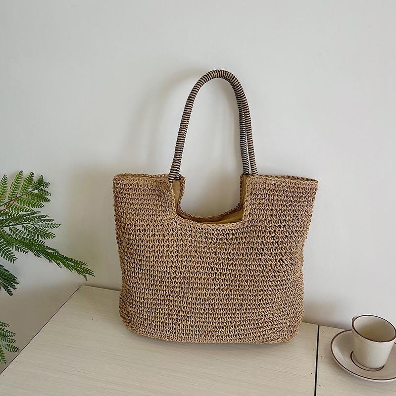 Сумка-тоут ручной работы, летняя тканая сумка-тоут, женская сумка через плечо большой емкости, женская пляжная сумка из бумажной веревки
