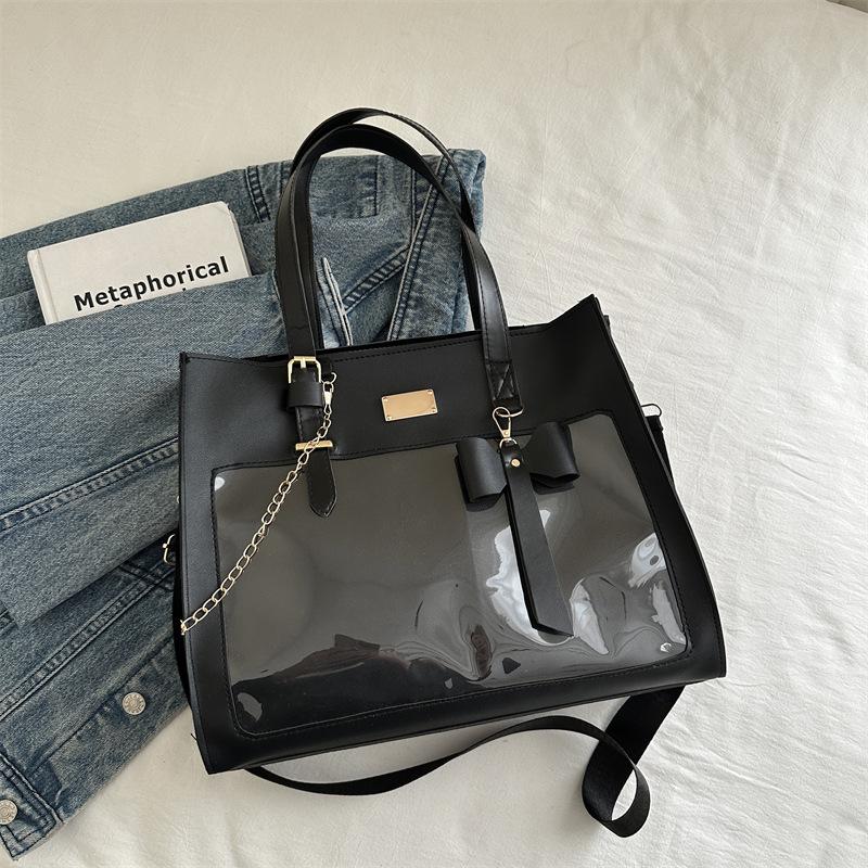 Сумка-тоут с бантом для девочки Niche Design, большая вместимость, через плечо, прозрачная лента, сумка-тоут для боли чёрный