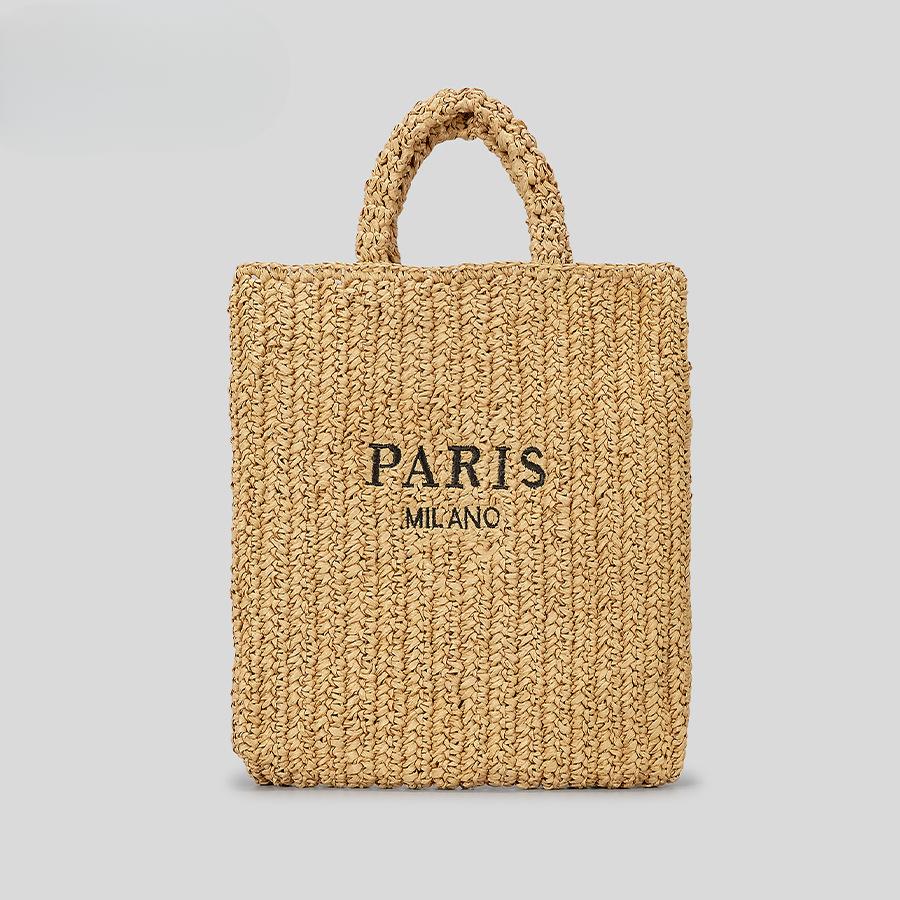 Сумка-тоут с вышитыми буквами ручной работы, женская, для отдыха на море, соломенная сумка, большая вместимость, плетеная сумка хаки