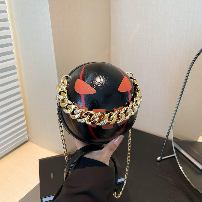 Сумка-тыква на Хэллоуин 2024 года, новая маленькая круглая сумка с косой цепочкой, модная и забавная сумка-тыква чёрный