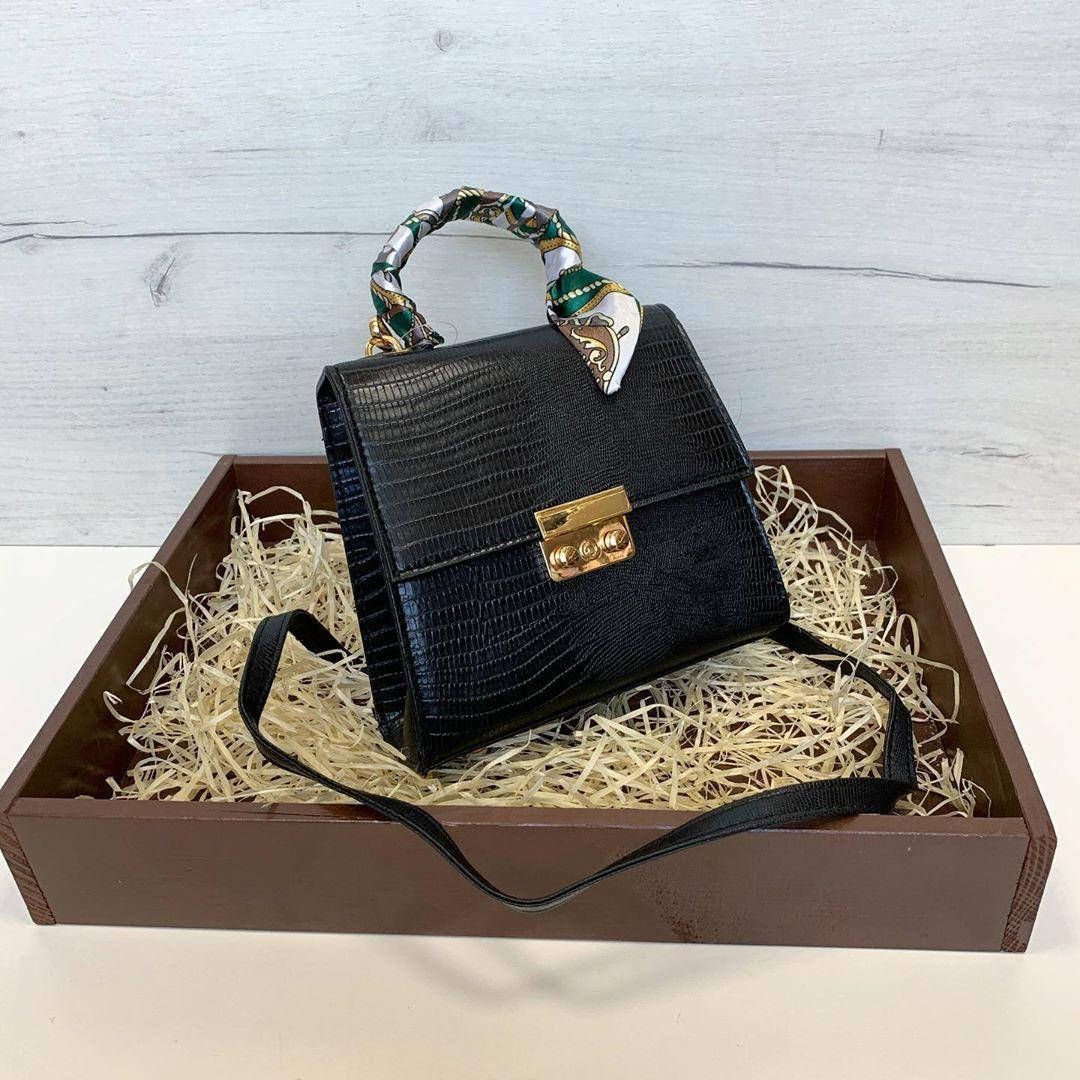 Сумка фактура крокодил с платком на ручке в комплекте (0392) Черный