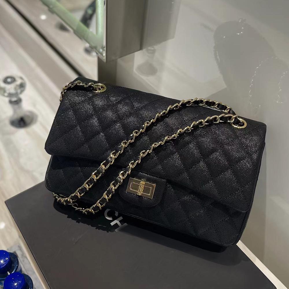 Сумка-цепочка из коровьей кожи Caviar: Сумка через плечо и почтальонка из натуральной кожи осень/зима 2024 для женщин. 25x7x15 cm чёрный
