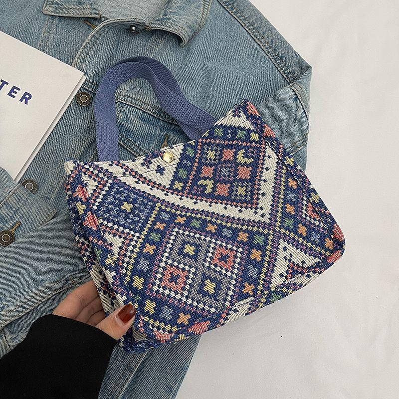 Сумка через плечо в этническом стиле для студента, холщовая сумка Blue small size